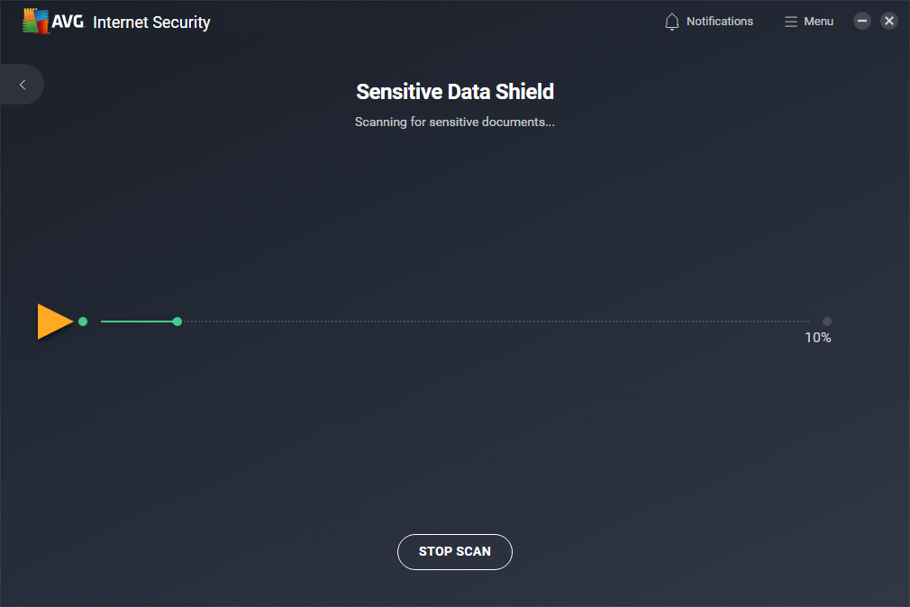 - Espera a que el Escudo de datos confidenciales analice tu dispositivo Windows en busca de documentos confidenciales. Si quieres cancelar el análisis, haz clic en Detener análisis.