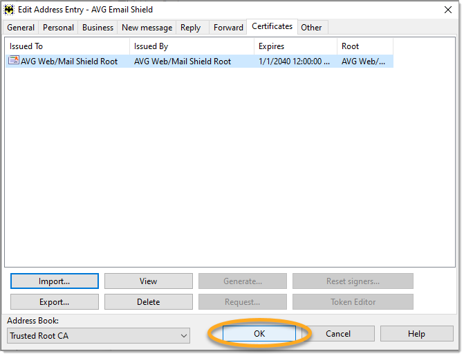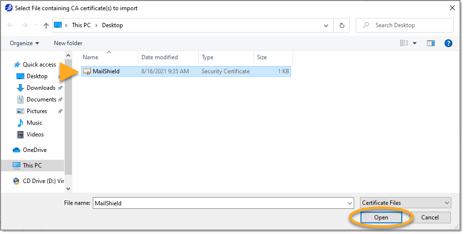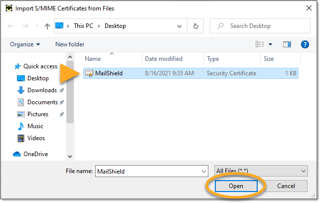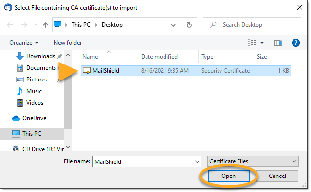 Le certificat de l’Agent e-mail est exporté. Continuez à suivre les étapes ci-dessous pour importer le certificat de l’Agent e-mail dans votre client de messagerie.