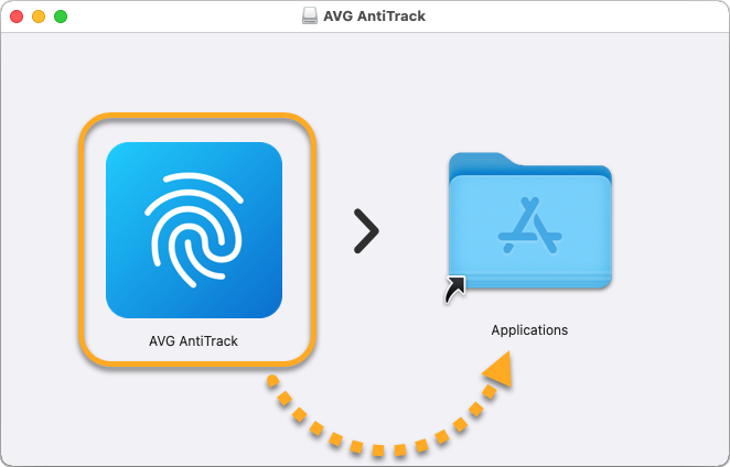 - Cliquez sur l’icône AVG AntiTrack et faites-la glisser dans le dossier Applications.