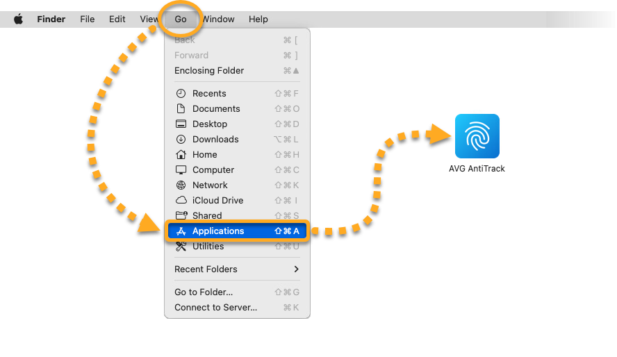 - Cliquez sur Aller à ▸ Applications dans la barre des menus Apple, puis double-cliquez sur l’icône AVG AntiTrack pour ouvrir l’application.