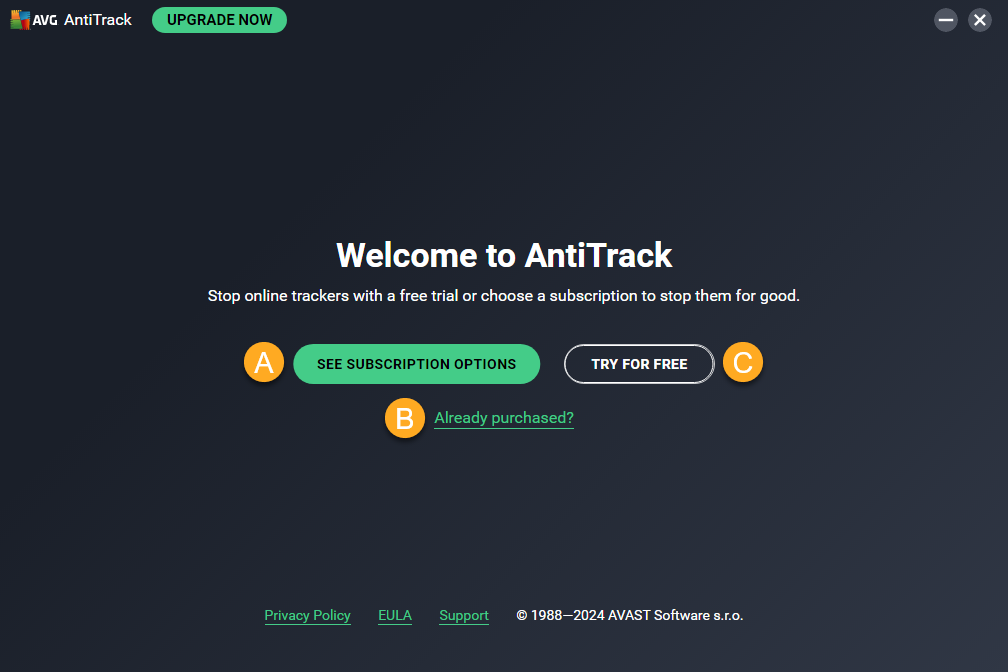 - Essayer gratuitement : démarrez un essai gratuit d’un mois d’AVG AntiTrack Premium.