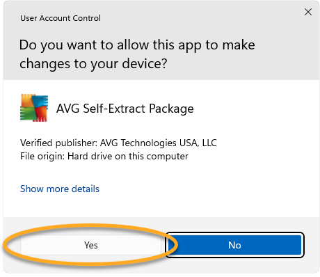 Si vous n’arrivez pas à autoriser l’installation d’AVG AntiTrack Premium, consultez l’article suivant pour obtenir des conseils : Gestion des comptes d’administrateur sur votre PC Windows. - Si la boîte de dialogue Contrôle de compte d’utilisateur vous demande une autorisation, cliquez sur Oui.