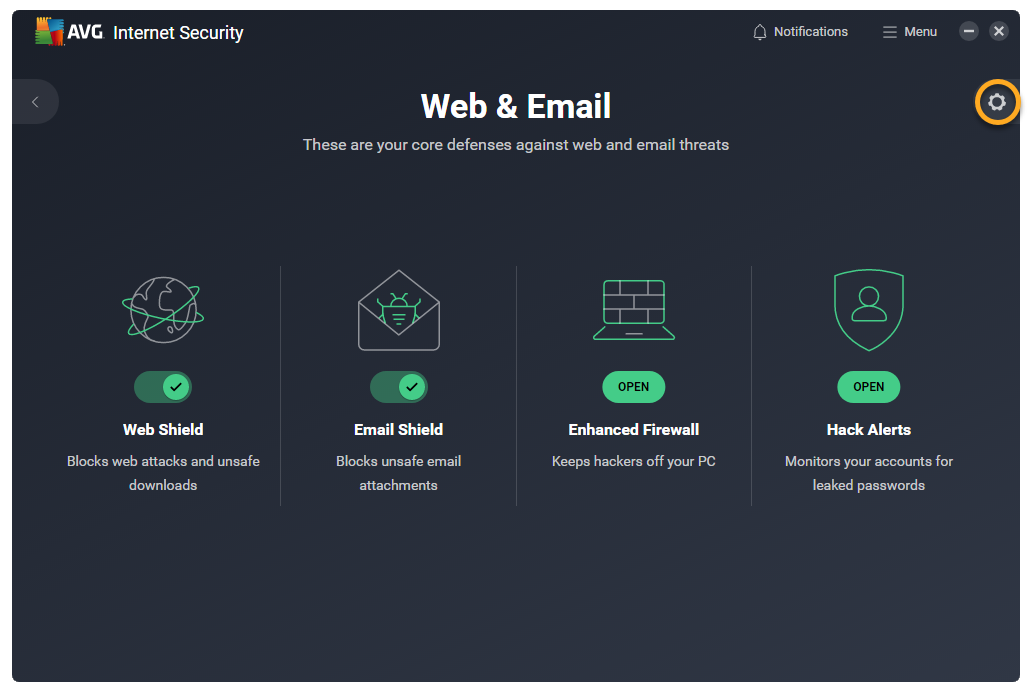 - Ouvrez AVG Antivirus et cliquez sur la vignette Web et e-mail dans l’écran principal de l’application.