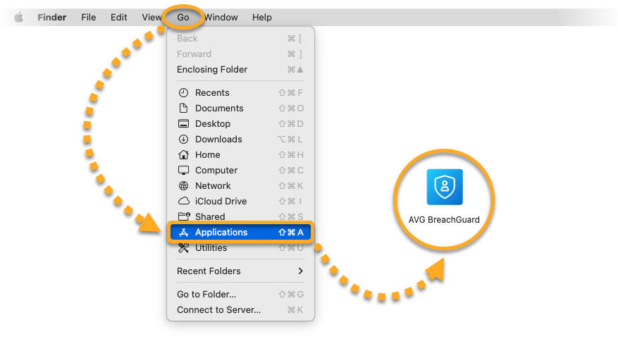 - Cliquez sur Aller à ▸ Applications dans la barre des menus Apple, puis double-cliquez sur l’icône AVG BreachGuard pour ouvrir l’application.