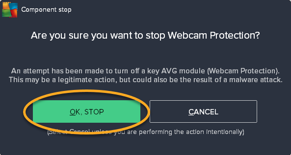 - La webcam de votre PC a cessé de fonctionner : assurez-vous que le Mode malin ou le Mode strict est sélectionné dans Paramètres de Protection de webcam. Si le mode de la Protection de webcam est défini sur Bloquer l’accès à la webcam et au microphone, AVG empêche toutes les applications d’accéder à la webcam de votre PC.