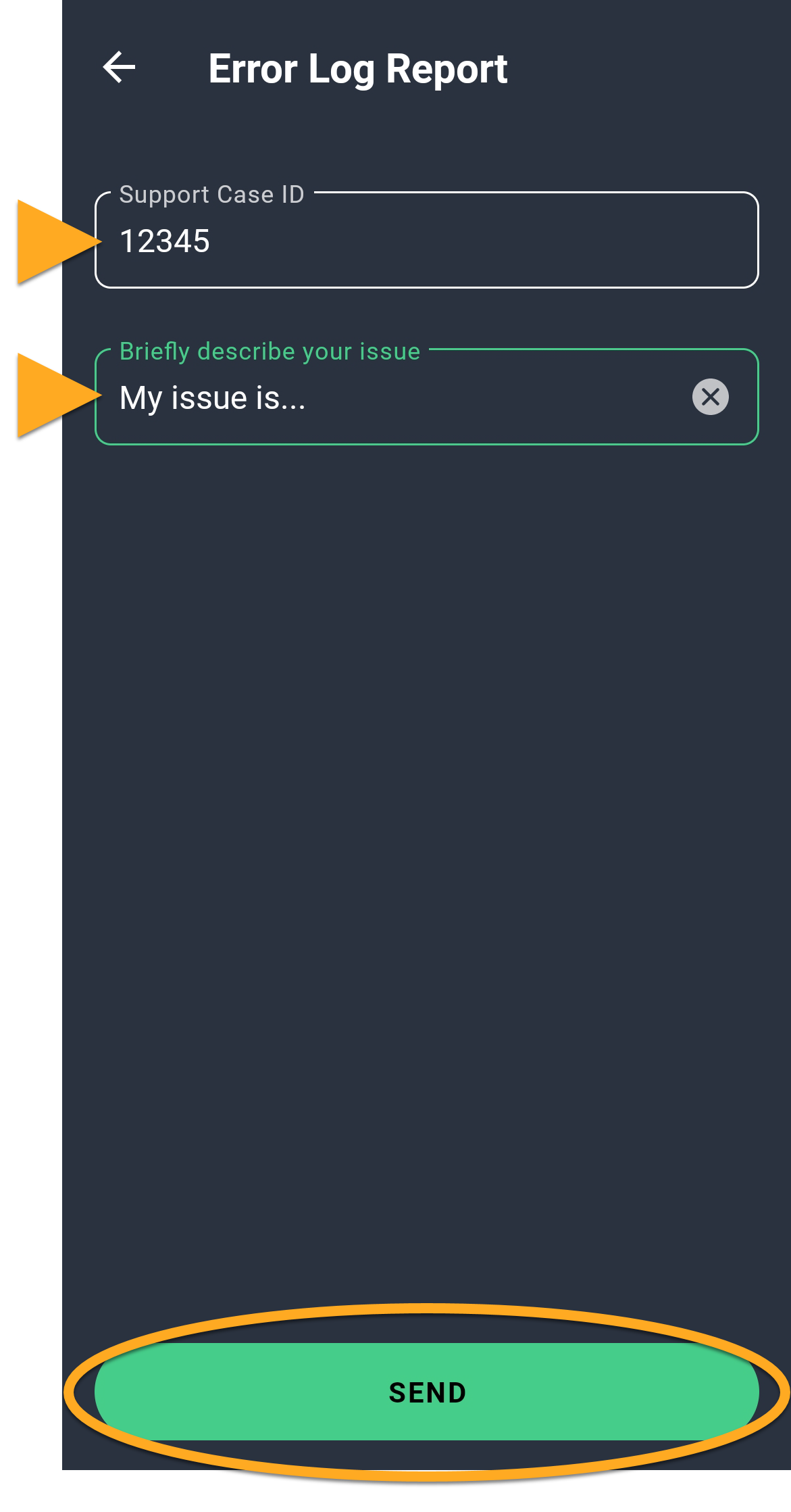 - Saisissez vos ID du dossier de support et Décrivez brièvement le problème dans les champs prévus, puis cliquez sur Envoyer.