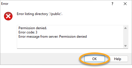 Se si prova ad accedere alla cartella public, si potrebbe ricevere un messaggio di errore. Questo è un comportamento previsto, perché i contenuti della cartella non sono accessibili. Premere OK per chiudere il messaggio.