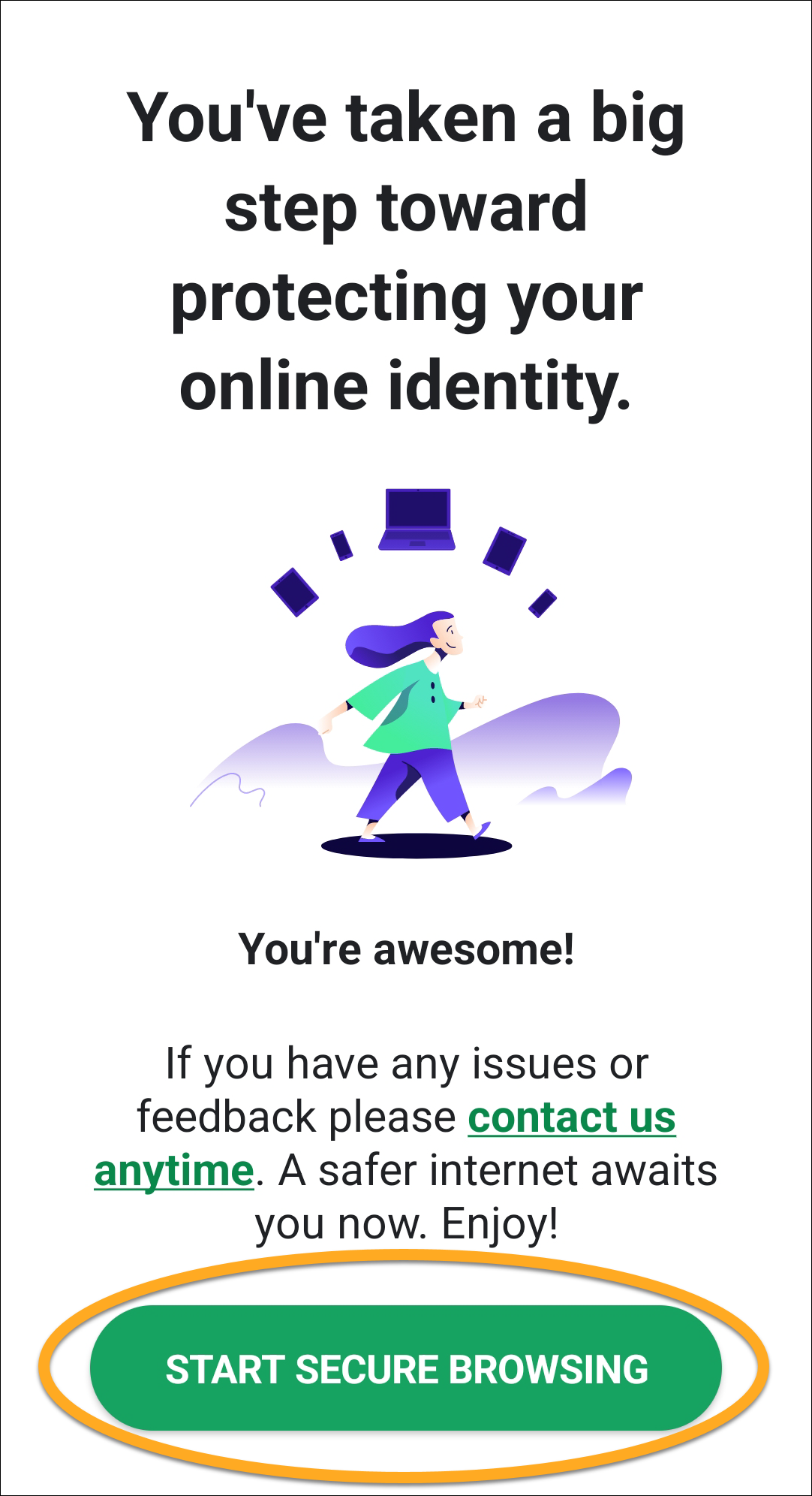 - Scorrere le schermate di benvenuto, quindi toccare Avvia la navigazione sicura.