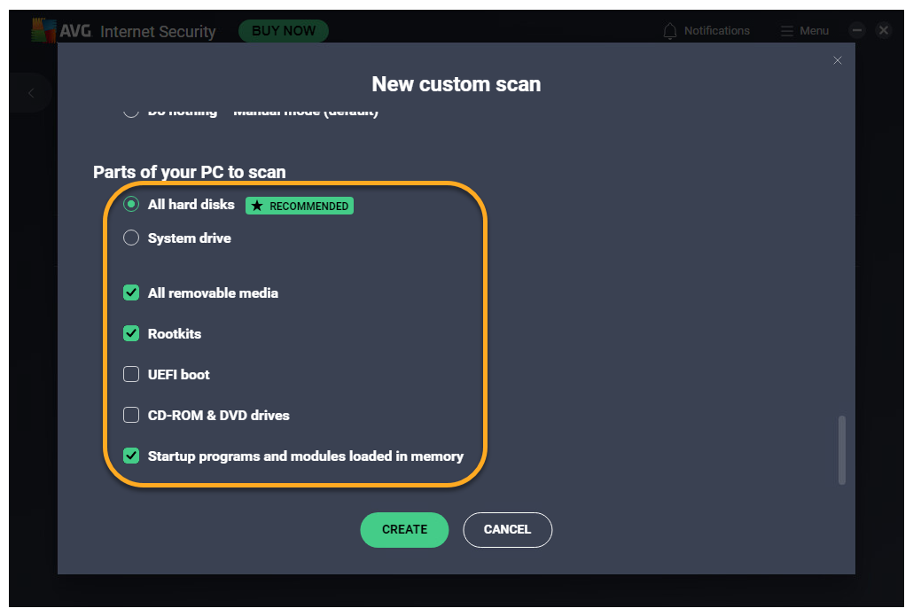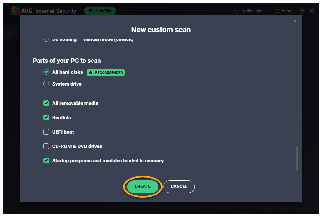 - BIOS UEFI: se questa opzione è selezionata, AVG esegue una scansione per rilevare eventuali minacce nascoste nel processo di avvio del BIOS UEFI.