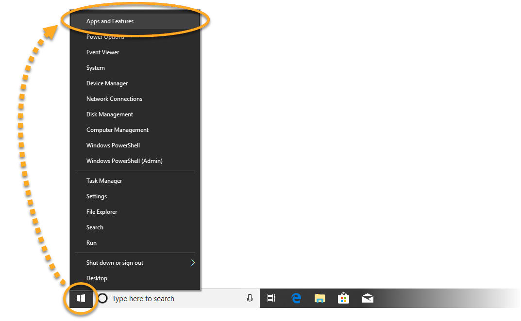 1. Windows の[ スタート]ボタンを右クリックし、表示されたメニューで[アプリと機能]を選択します。