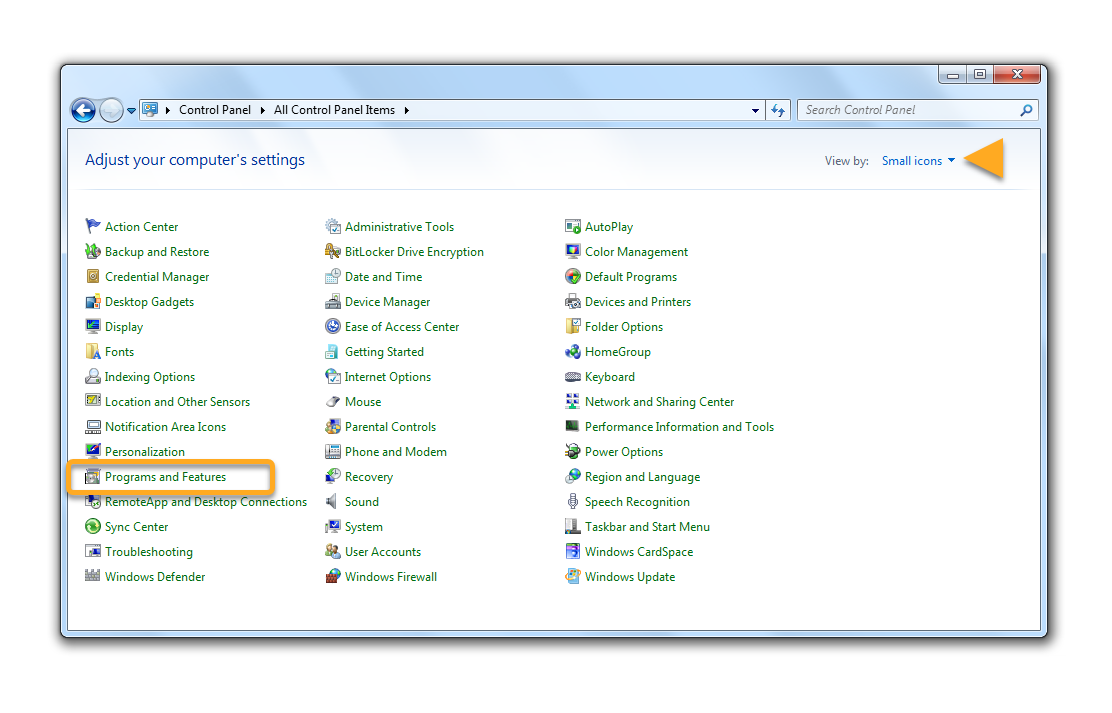 • オプション B(大/小のアイコン ビュー)プログラムと機能]をクリックします。