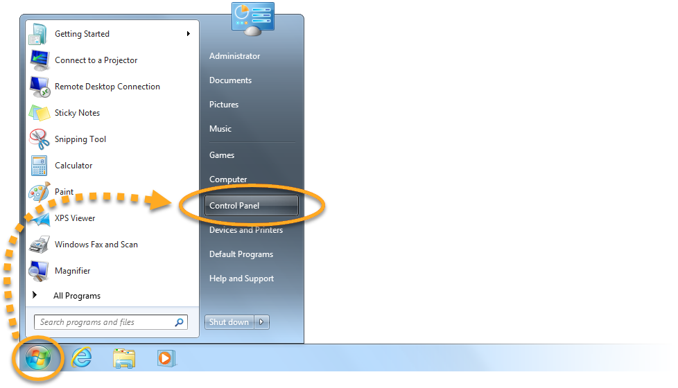 1. Windows の[ スタート]アイコンをクリックして、[コントロール パネル]を選択します。