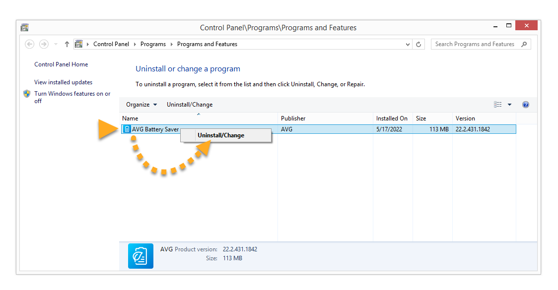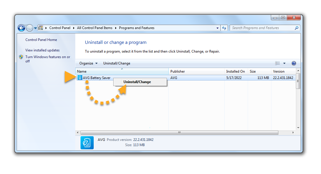3. AVG バッテリー セーバー]を右クリックし、ドロップダウン メニューで[アンインストール/変更]を選択します。