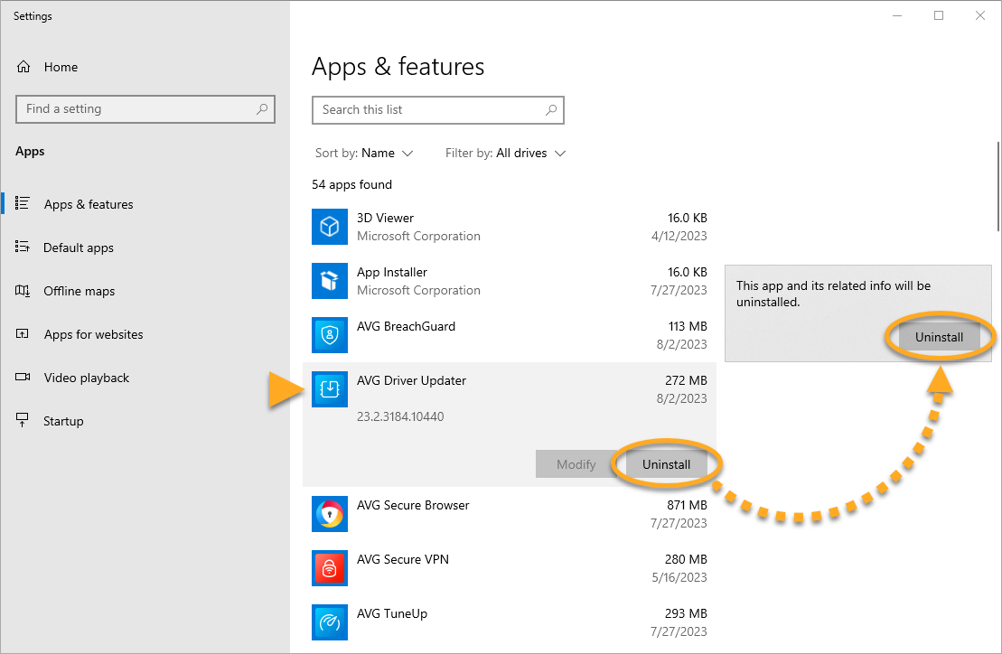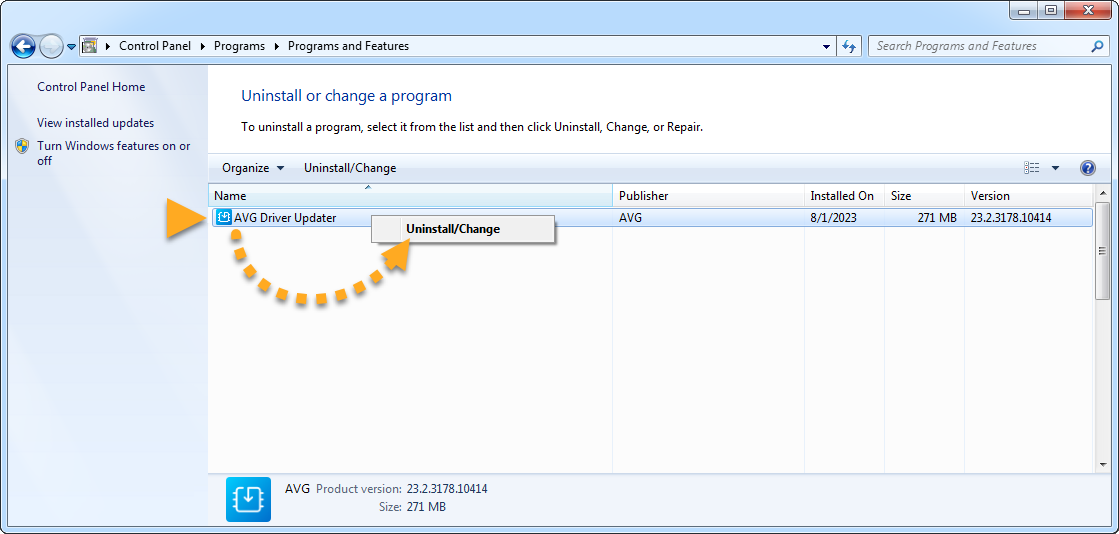 Windows デバイスから AVG ドライバ アップデーター をアンインストールするには、Windows のバージョンに応じて、以下のタブを選択します。