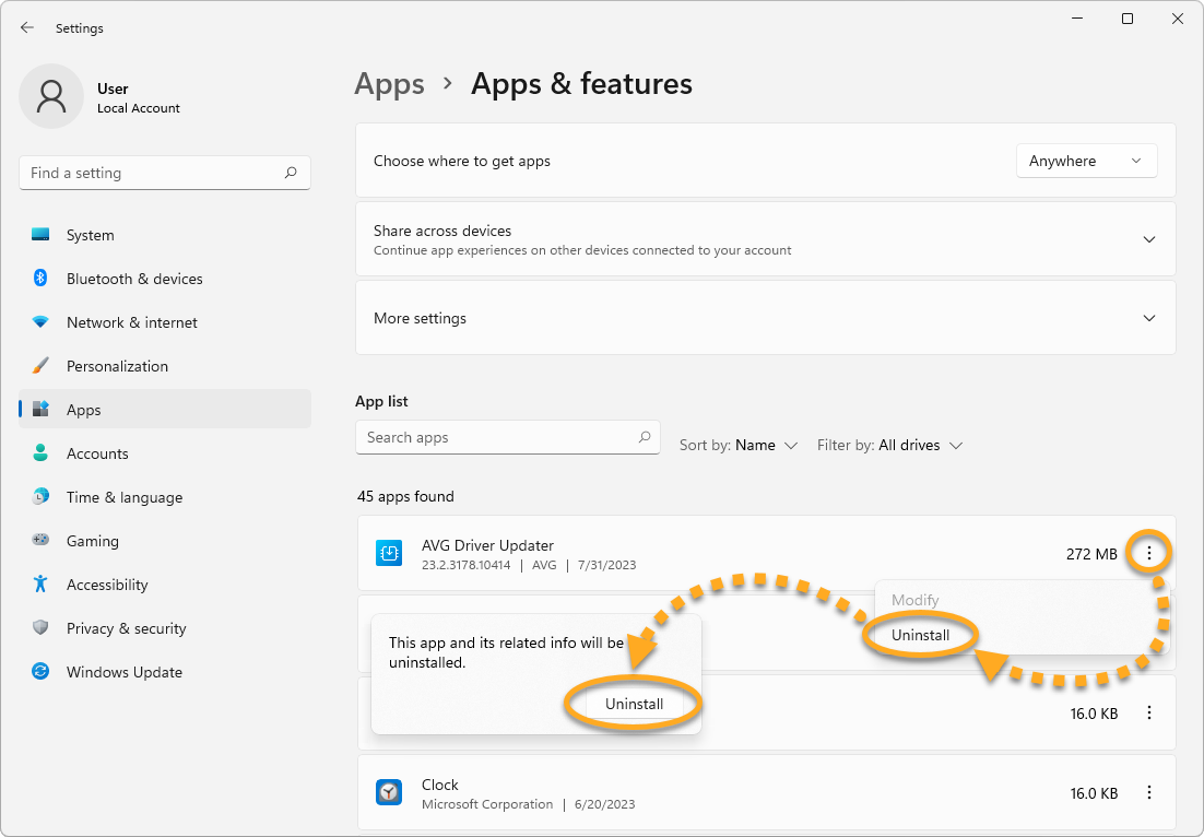 有料の AVG ドライバ アップデーターがある場合は、アプリケーションをアンインストールしても、サブスクリプションが自動的にキャンセルされることはありません。サブスクリプションのキャンセルについては、次の記事をご参照ください。AVG サブスクリプションのキャンセル - よくある質問