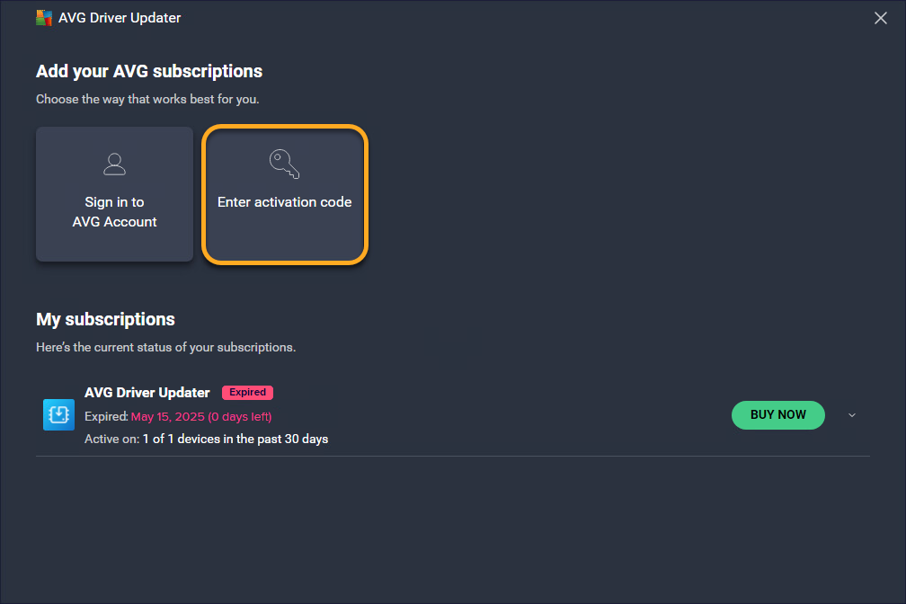 AVG ドライバ アップデーター は有料のアプリケーションであり、サブスクリプションが必要です。AVG ドライバ アップデーターをインストールした後、ライセンスを手動でアクティベートする必要がある場合があります。