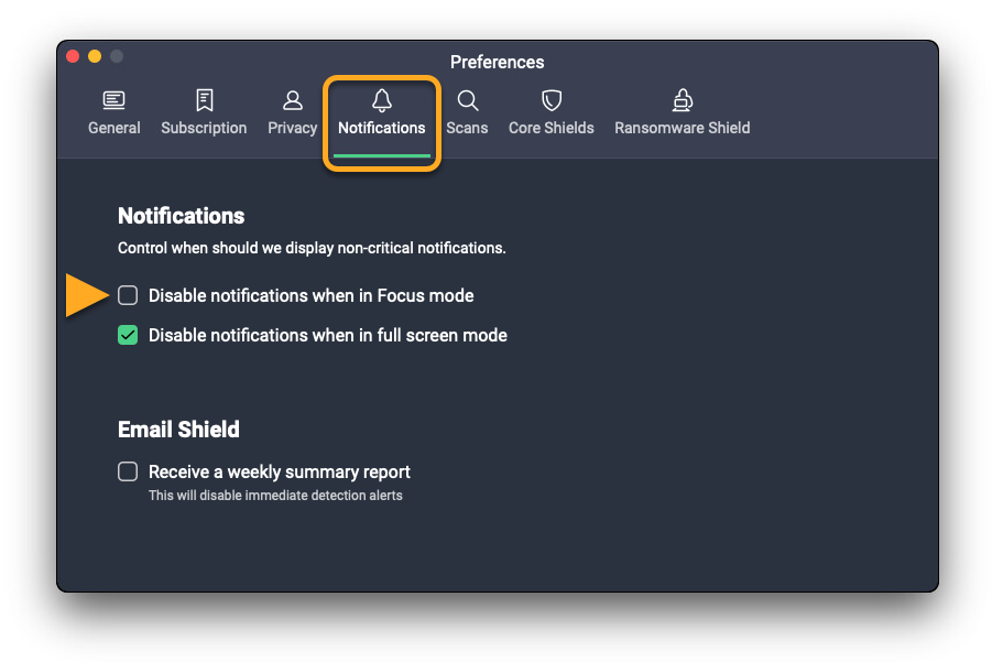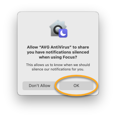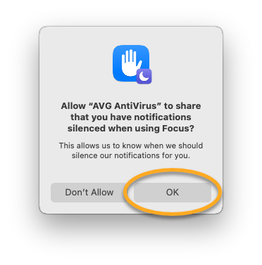 集中モードへのアクセスを許可することにより、AVG アンチウイルスは通知を停止するタイミングを知ることができます。