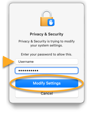 - Mac起動時に使用するパスワードを入力し、[設定を更新] をクリックします。