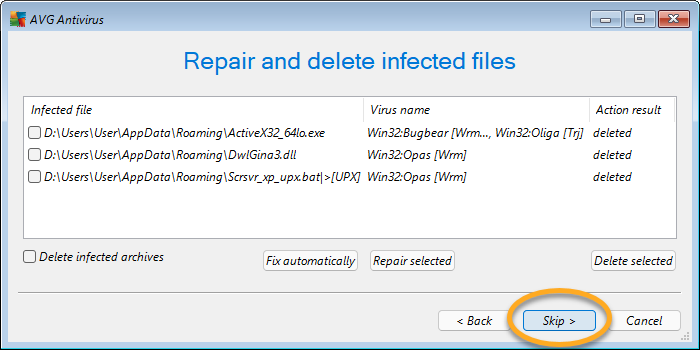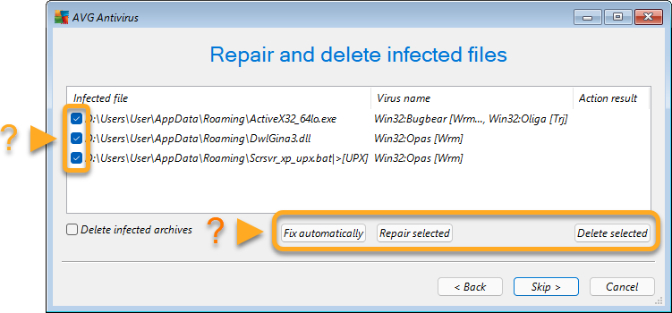 感染したファイルを修復または削除する手順については、以下のセクションをご参照ください。