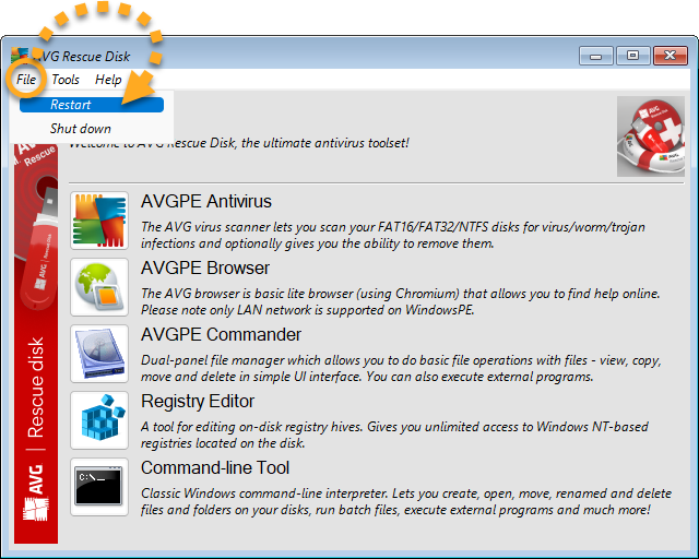 お使いのパソコンがマルウェアに感染していると思われ、他のすべてのウイルス対策スキャン (ブートタイム スキャンを含む) で問題が解決されなかった場合、レスキュー ディスクをご利用いただけます。レスキュー ディスクは、システムが動作していないときにパソコンをスキャンします。この方法ではマルウェアが妨害できないため、マルウェアを検出して削除できる可能性が高まります。