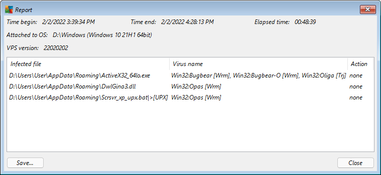 - スキャンが完了したら、脅威が見つかったかどうかスキャンレポートと結果画面を確認します。