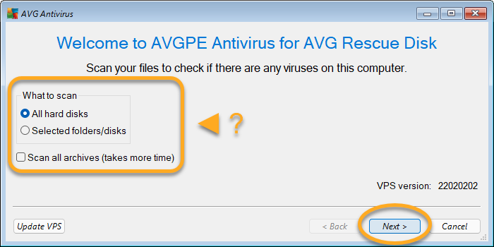PC でレスキュー ディスクが起動したら、マルウェアのスキャンを開始できます。