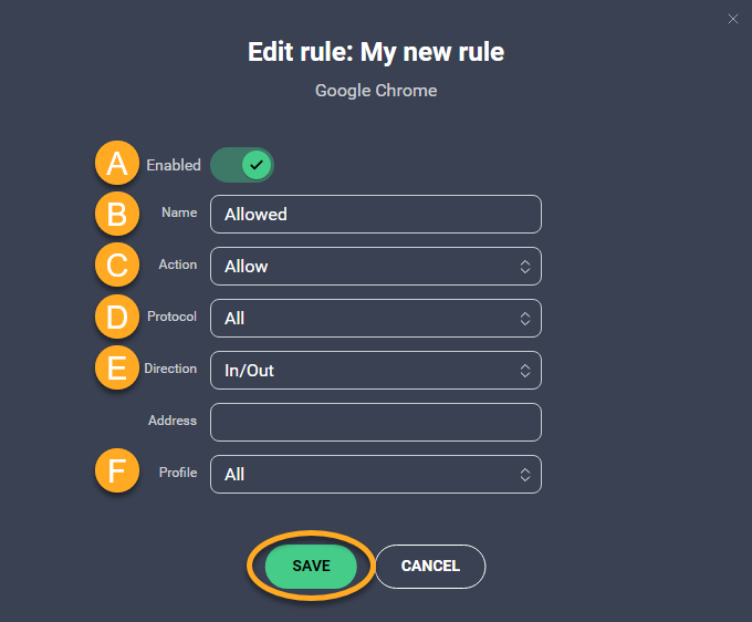 Elke keer dat u deze app gebruikt, past Verbeterde firewall de gekozen toepassingsregels toe.