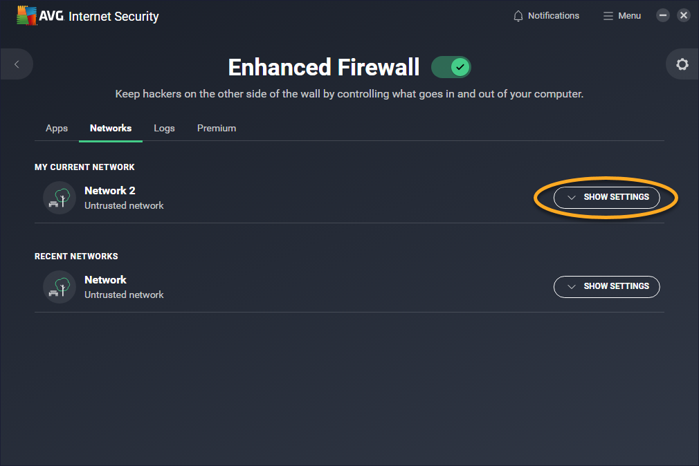 Telkens wanneer u verbinding maakt met een nieuw netwerk, detecteert AVG Verbeterde firewall of het netwerk privé of openbaar is en past het automatisch de relevante instellingen aan. Als AVG Verbeterde firewall de toegang tot uw netwerk beperkt, kunt u handmatig aangeven dat u het netwerk vertrouwt door de onderstaande stappen te volgen: