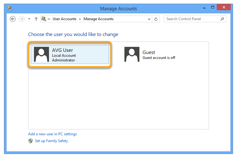 Raadpleeg de gedeelten in dit artikel om te controleren welke bestaande gebruikersaccounts op uw computer over beheerdersrechten beschikken en leer hoe u uw AVG-product als beheerder installeert. In dit artikel vindt u ook oplossingen die van pas kunnen komen als u geen toegang hebt tot een beheerdersaccount.