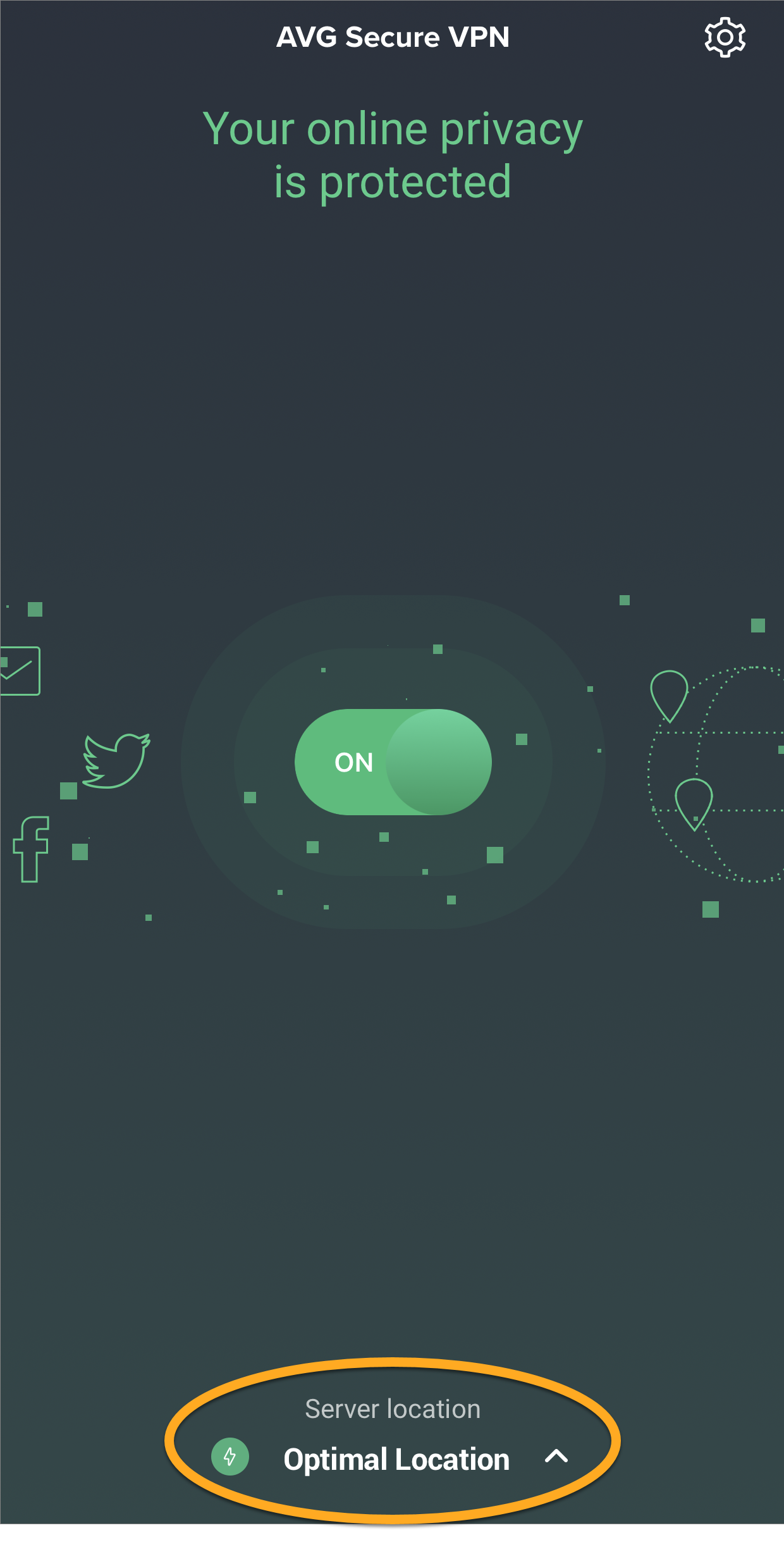 Aplikacja AVG Secure VPN umożliwia łączenie się z Internetem za pośrednictwem bezpiecznych serwerów VPN AVG, które chronią połączenie i zapewniają prywatność.