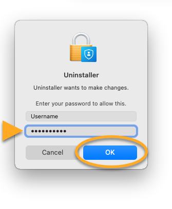 3. Se solicitado, digite a senha que você usa ao iniciar o Mac e clique em OK.