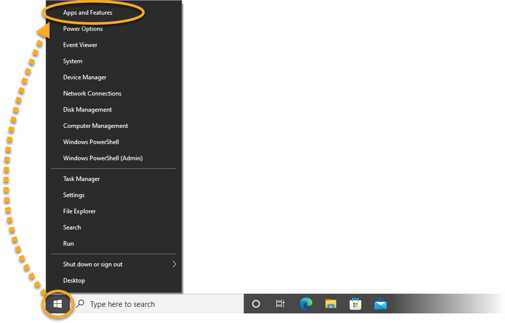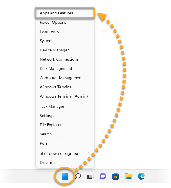 1. Clique com o botão direito no ícone Iniciar do Windows e selecione Aplicativos e Recursos no menu que será exibido.