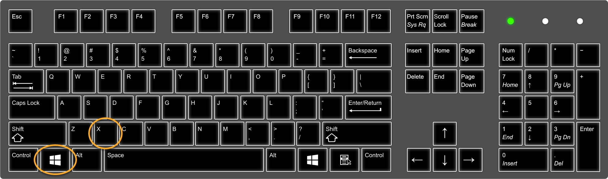 1. No teclado, pressione a tecla do logotipo do Windows e a tecla X simultaneamente.