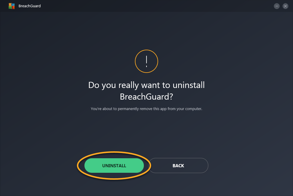2. Quando a janela do desinstalador do AVG BreachGuard aparecer, clique em Desinstalar.
