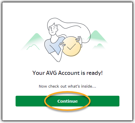 - Clique em Continuar para abrir a tela principal da Conta AVG.