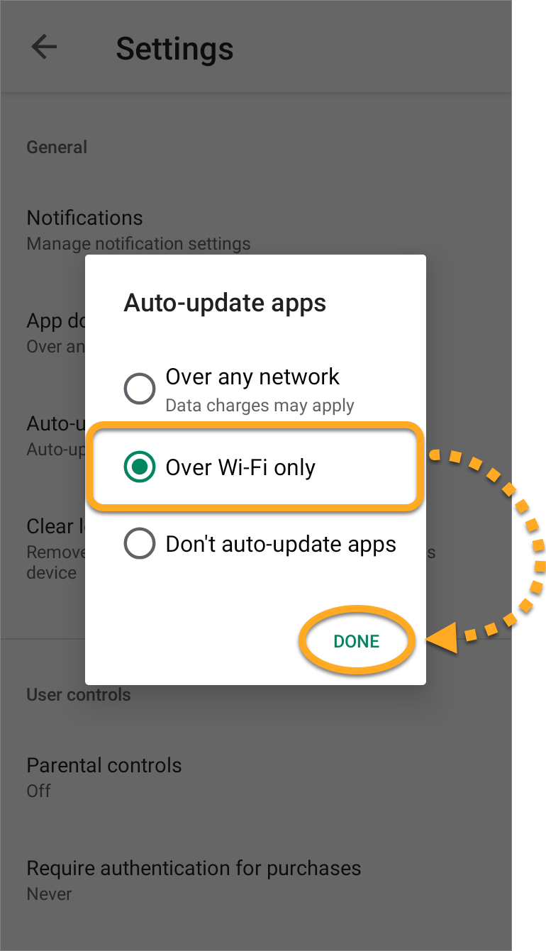 - Select one of the displayed options, then tap Done. We recommend selecting Over Wi-Fi only to reduce mobile data consumption.