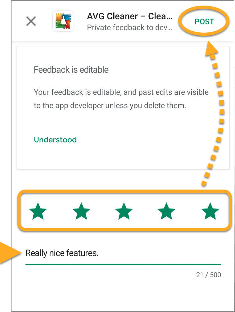 - Tap the stars to give a rating, enter your feedback, then tap Post to submit your feedback.