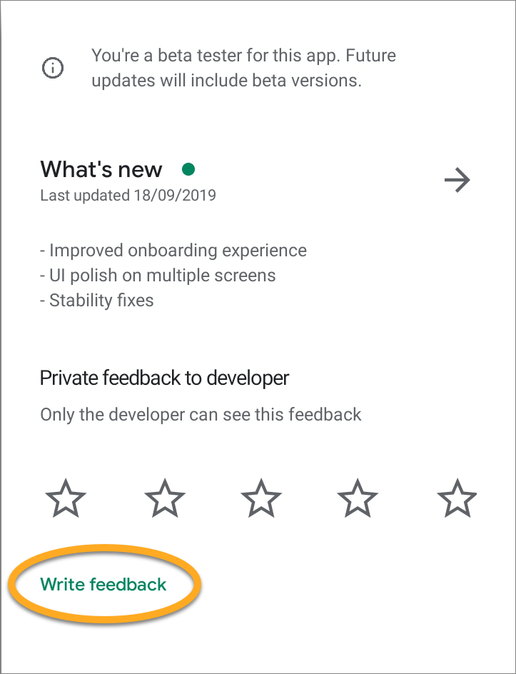 - Scroll down to Private feedback to developer, then tap Write feedback.