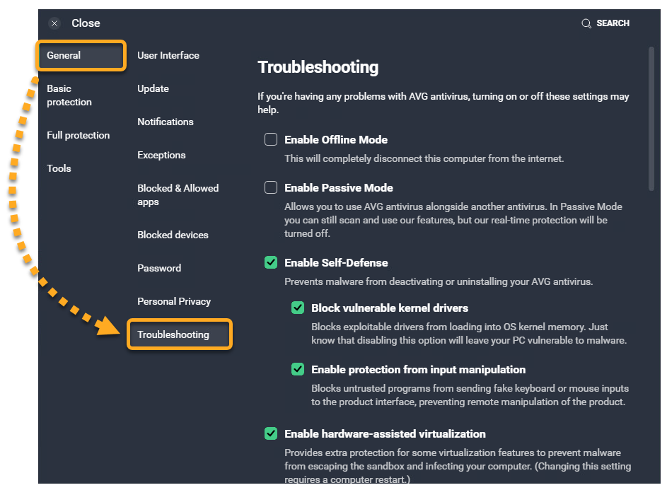 2. Select GeneralTroubleshooting.