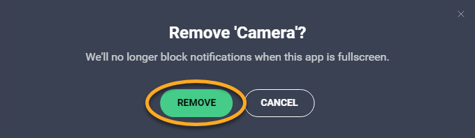 Your selected application is removed from the Do Not Disturb Mode list.