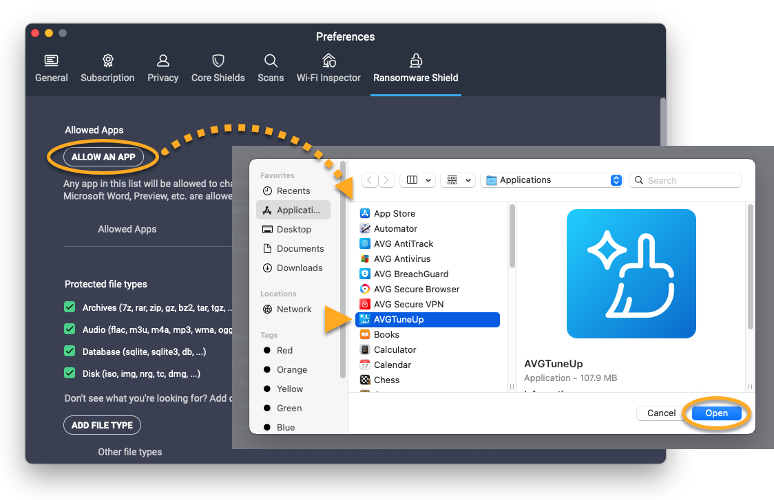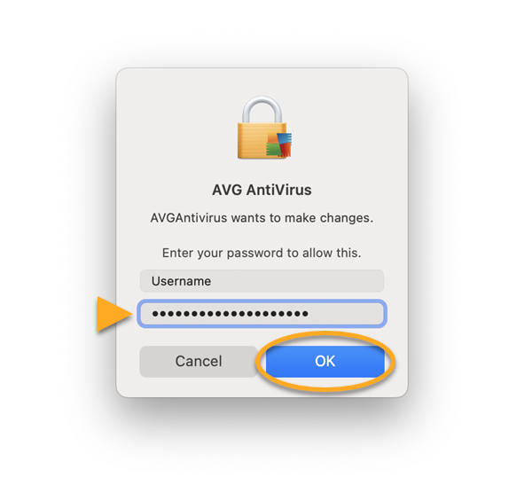 AVG AntiVirus will notify you any time an application tries to modify files in your protected folders (excluding those you have already added to the Allowed Apps list). - If prompted, enter the password that you use when you start your Mac, then click OK.