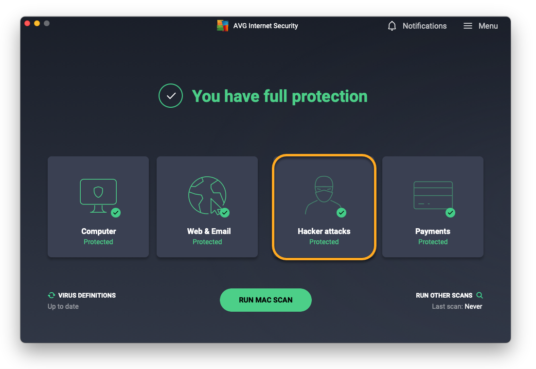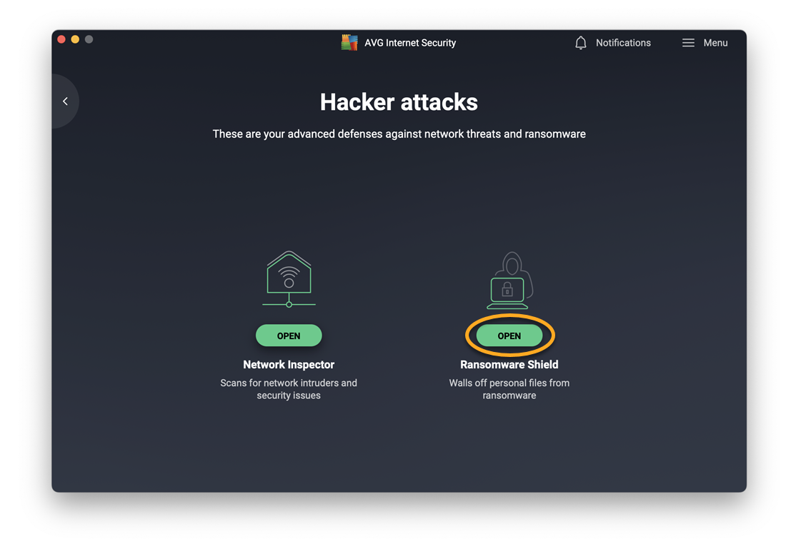 - Open AVG Internet Security and click the Hacker attacks tile.